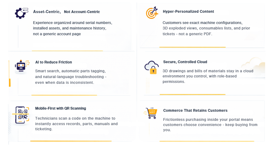 You have asked yourself, or your team has asked: Is it even possible to create a customer portal that is truly useful, hyper-personalized to each installed asset, with 3D parts, manuals, self-service ticketing, mobile QR scanning, and secure cloud control?